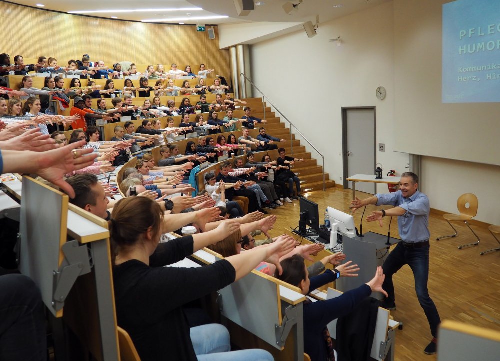 In Humor-Workshops u.a. in Zusammenarbeit mit der Stiftung HUMOR HILFT HEILEN von Eckart von Hirschhausen zeige ich Mitarbeiter*innen von Kliniken und Pflegeeinrichtungen und als Gastdozent in Pflegeschulen wie Humor ihre Arbeit erleichtert. Humor hilft Teams, sich besser zu verstehen, mindert Druck, legt die Basis für Vertrauen und wertschätzende Kommunikation. Und Humor kann helfen, mit Trauer und Leid besser umzugehen. Kleine Veränderungen mit großem Effekt.